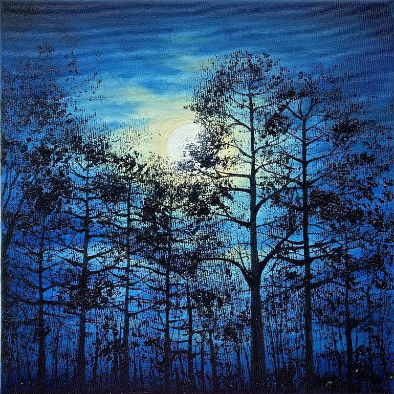 Full moon night forest Painting is an original painting painted by the artist Kizimenko Alla. It's NOT a PRINT!!! TITLE: "Night forest" In my work I used artistic oil paints, stretched canvas, brushes. The painting is written in my author's technique. The paint smears are bright, pasty. I singled...