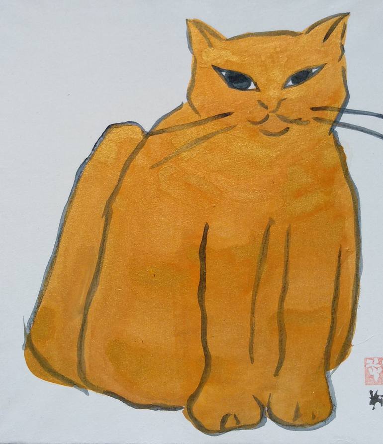 In Japan, cats are animals that bring good luck. This painting will bring you good luck. Nihonga is an ancient Japanese painting technique. Painted with mineral and shell powder. Drawn on Japanese paper "Washi". The frame has been antiqued by the artist himself. The frame is lightweight. It is mad...