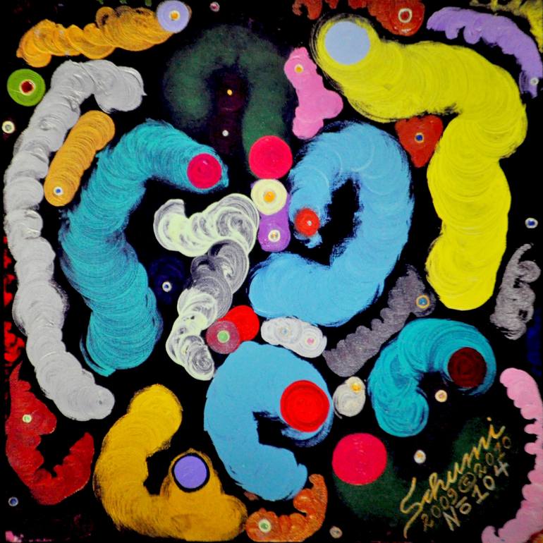 Available as a limited edition print. Created 2009 - 2010 Medium: Oil and dots of glitter paint on black canvas panel Original Size: 40cm x 40cm