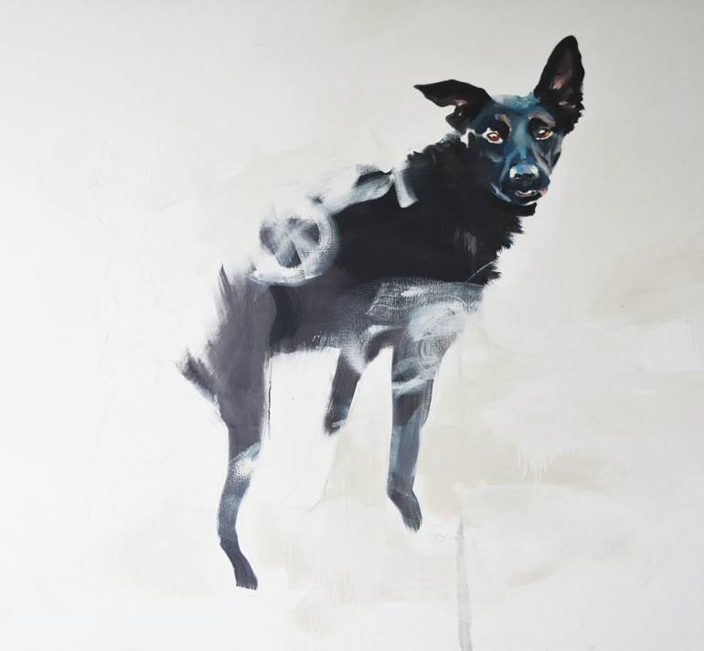 I was inspired by the dog who I met on the beach in Gdansk once. She was so whild and nature. I wanted to capture that by painting the picture.