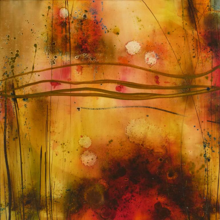 This painting is like a piece of kimono... An inspiration of nature that I treated Asian style. This gives a dream of vegetation in warm colors. There is a lot of transparency and rich ambiances, while giving a zen and quiet side to the whole. Cette peinture est comme une morceau de kimono... une i...