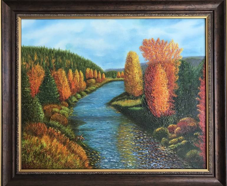 The oil painting before you shows early autumn. I, with the whole palette of colors inherent in this time of year, emphasized the brightness of nature, displaying in the landscape not only a sunny day, but also colorful leaves on trees and bushes, reflected in the river. This painting is bright and ...
