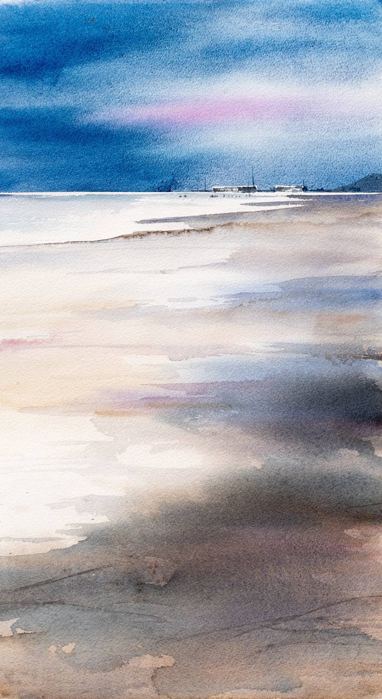 This artwork was painted during a trip to France in 2022. The endless coastline stretching to the horizon is mesmerizing. You can walk for hours along the coast and the scenery will always be different depending on the lighting and the time of day.