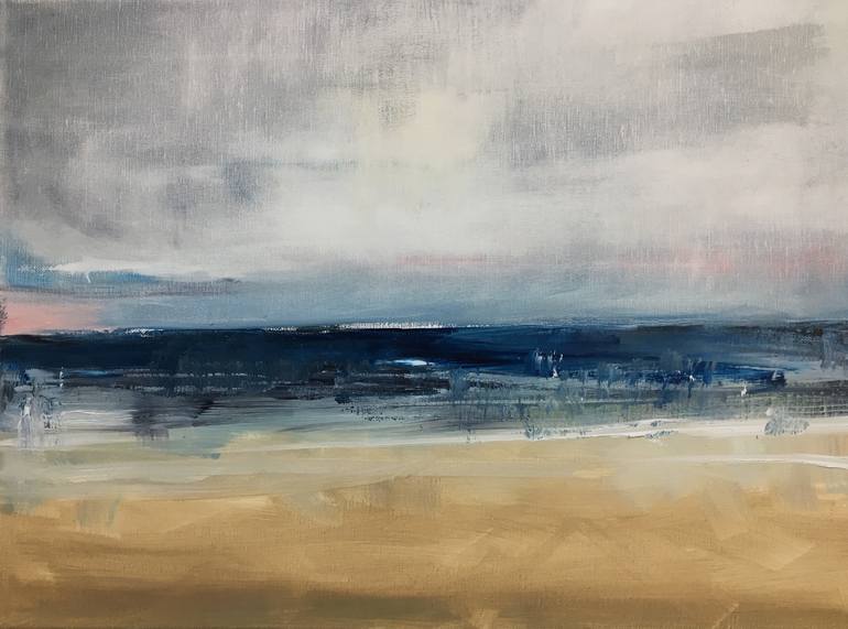 The light in winter at the coast is lovely. I am lucky to live near the sea in the Netherlands, it never fails to inspire me. This painting shows the end of a day in winter. I've painted it with brushes and a pallette knife.
