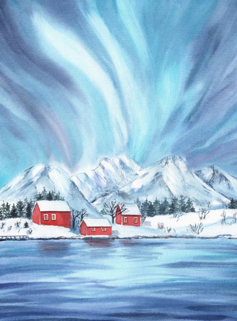 NORTHERN LIGHTS IN NORWAY by Svitlana Yanyeva 2024 SIZE: 40x30cm (11.8 x 15.7 inch) QUALITY: This original watercolor painting is my handmade unique artwork, painted on 100% cotton watercolor paper with finest quality watercolor paints, ensuring the colors do not fade over time AUTHENTICITY: Signed ...