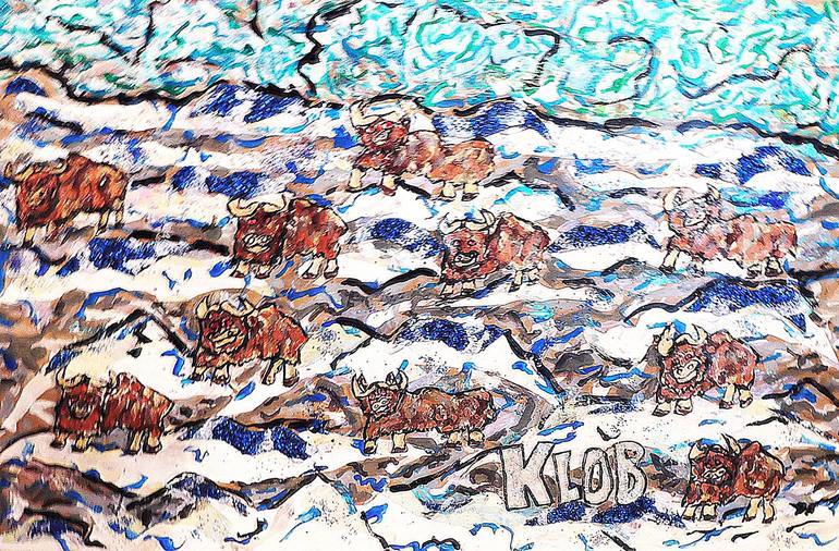 Northernmost Tundra - Last Herd of Musk Oxen evokes the majestic image of these resilient creatures in their arctic home. The artist masterfully employs a combination of acrylic, color, spray paint, airbrush, and gesso to bring this scene to life on hardboard, paper, plastic and other found objects....