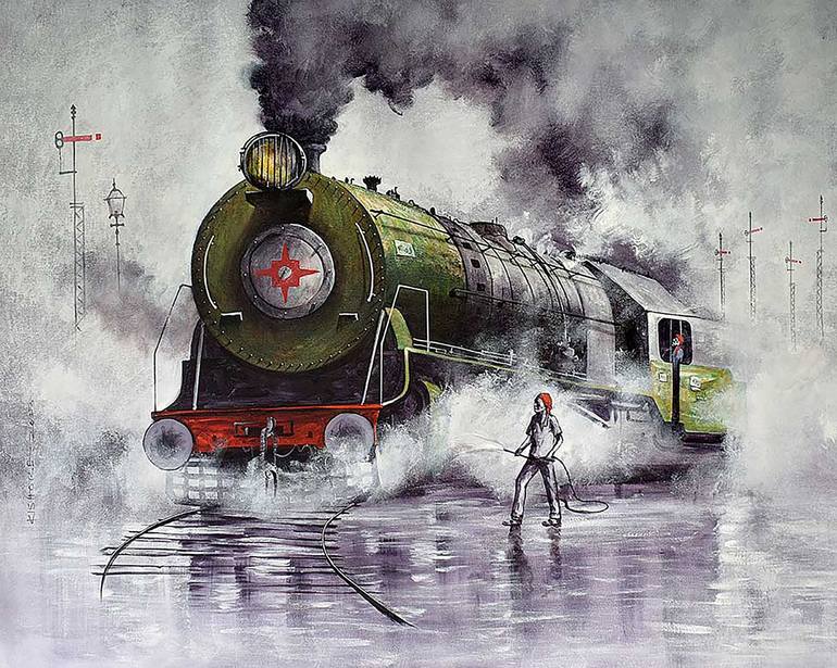 At that time, I was around 5 to 6 years old. I lived in a place where locomotives travel around. And I was always running out to watch them and loved to sketch them. This was my old memory of childhood. I try to recall those memories and translate them into the canvas. That is how the series "NOSTAL...