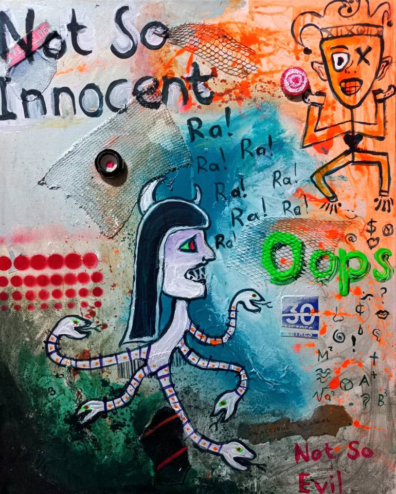 This painting was inspired by looking back on someone that I used to know. Not so innocent but not so evil!