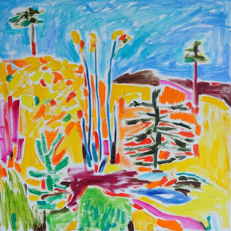 November forest contemporary landscape painting in autumn colors. Bright colors, art gift idea, din room wall art.