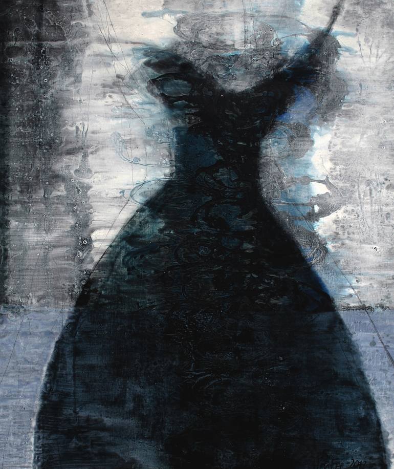 Focus is the figure in the room. The painting is an interplay of structure and translucent layers. Signed and dated on the front. The sides are painted with visible traces of the painting process. A professional hanger is already mounted, so the painting is ready to hang, you only need a nail. Seal...