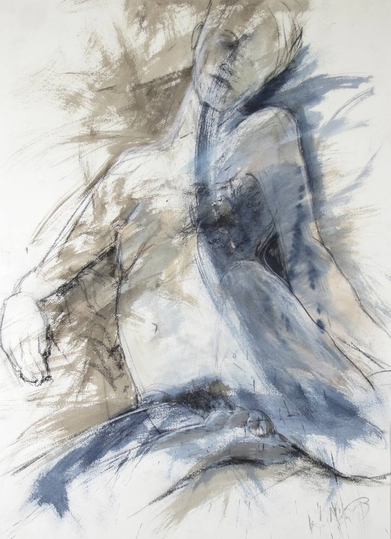 These figure studies were usually started by first creating an abstract background in aquarelle while gazing with an unfocused eye at the model.Then slowly adding just enough detail to capture the individual in front of me ...