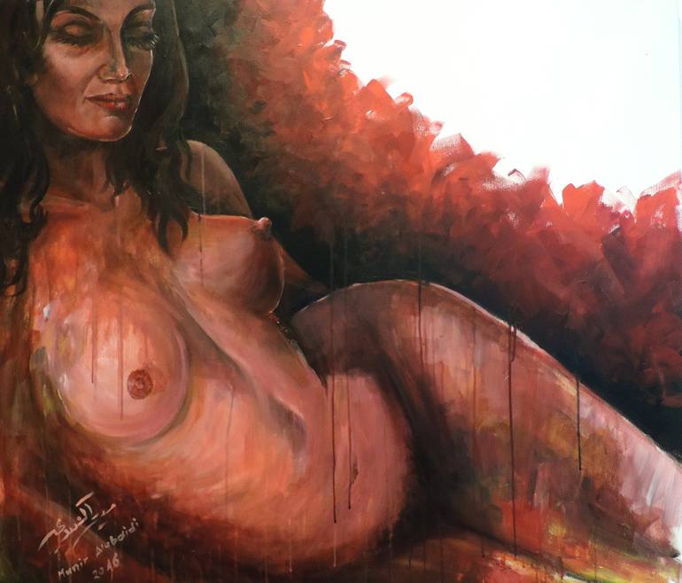 This lady is satisfied in this surroundings that dominated by carmine red and black with her own ecstasy without any outsider. This word is unframed