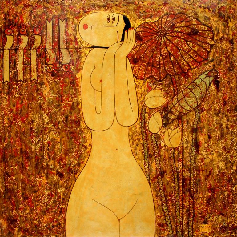 Bui Trong Du was born in 1976 in Hai Phong, he currently lives and works in Hanoi. During his studies and work, he traveled to many places in Northern Vietnam, falling in love with his homeland's landscape and imbued with traditional cultural values. Most of his artworks have an Oriental figurative style, sometimes mixed with a bit of impressionism or expressionism. With a simplified and stylized form of expression, the soft penmanship echoes Vietnamese folk paintings. Artworks such as summer lotus flowers, young women with lotuses, street corners, flower vases, and childhood memories such as flocks of birds, fishes, frogs, dragonflies... show the melody of beautiful, innocent life. Creating quality through mastering lacquer material is an important highlight in the work, it contrasts with the simplified form, this combination has created the artist's mark in the context of Vietnamese painting during the Integration.
