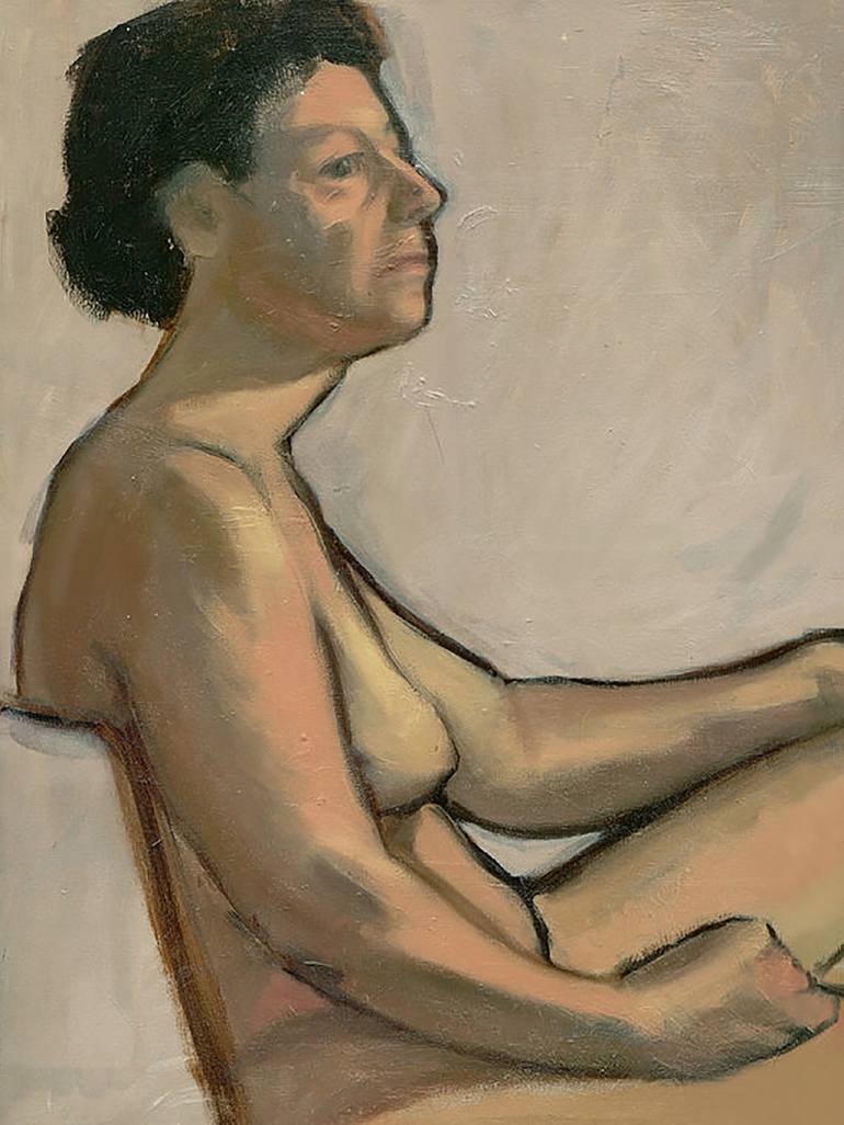One of my few and only nude figures in oil, done several years ago while still living in California. The dark outline around the figure was part of my original underlying drawing. I had meant to paint it out towards the end, but then decided I really liked it.