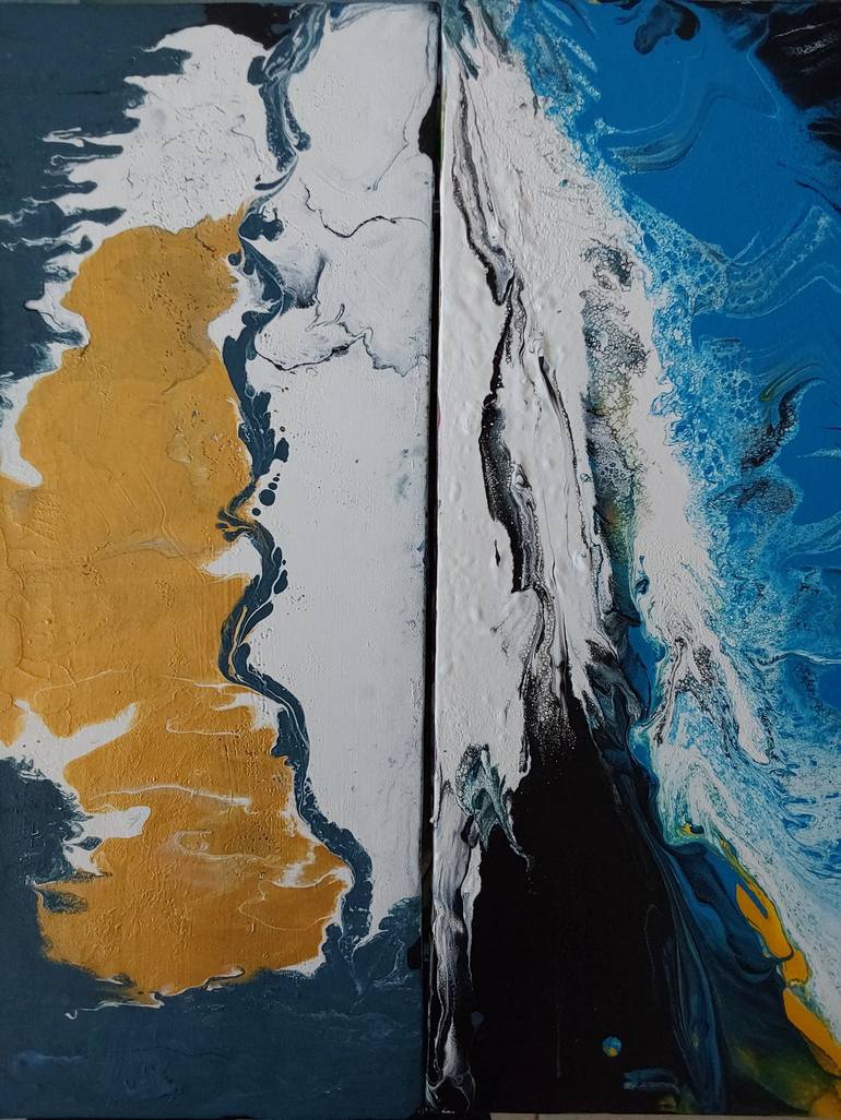 OCEAN this is original abstract acrylic painting on canvas wonderful sea 🌊 to inspired me to make paint it I make with acrylic paint mixed with the water on quality of canvas gresso just by pouring last glossing and framed with the silver color