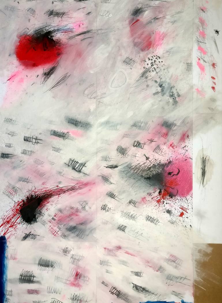 Tom Sipas paintings can be compared to a balancing act between colour, shape and line, surface and space, abstraction and object. The individual, coloured surfaces are applied to the canvas with strong brush strokes and expressive graphic marks, which are continuously worked over for developing new layers (aka new worlds). Integrated into the process of painting, are more or less defined non-objects, like everyday feelings of anxiety or beautiful moments from the thick of life, which are sometimes contoured in a linear manner or depicted flat, painted over or partially exposed. In his paintings, the artist combines an enormous variety of materials and with this approach stays true to his style of art in an unafraid and "risktaker" manner, which he realizes over and over in gallery installations and private collections. He uses a wide palette of mixed media, collage, xerox printing, on or inside his world of images. In Tom Sipas colour-intensive imagery world, the trick is not get caught up in the final object, just keep and feel everything loose between layers of non-figurative space and play intuitively. The confrontation with and combination of painting and working with different materials on canvas leads inevitably to a journey of discovery into the playful-sensual and most of all energy-laden artistic world of Tom Sipas, which leaves much room for one’s own stories, inviting thoughts to roam.