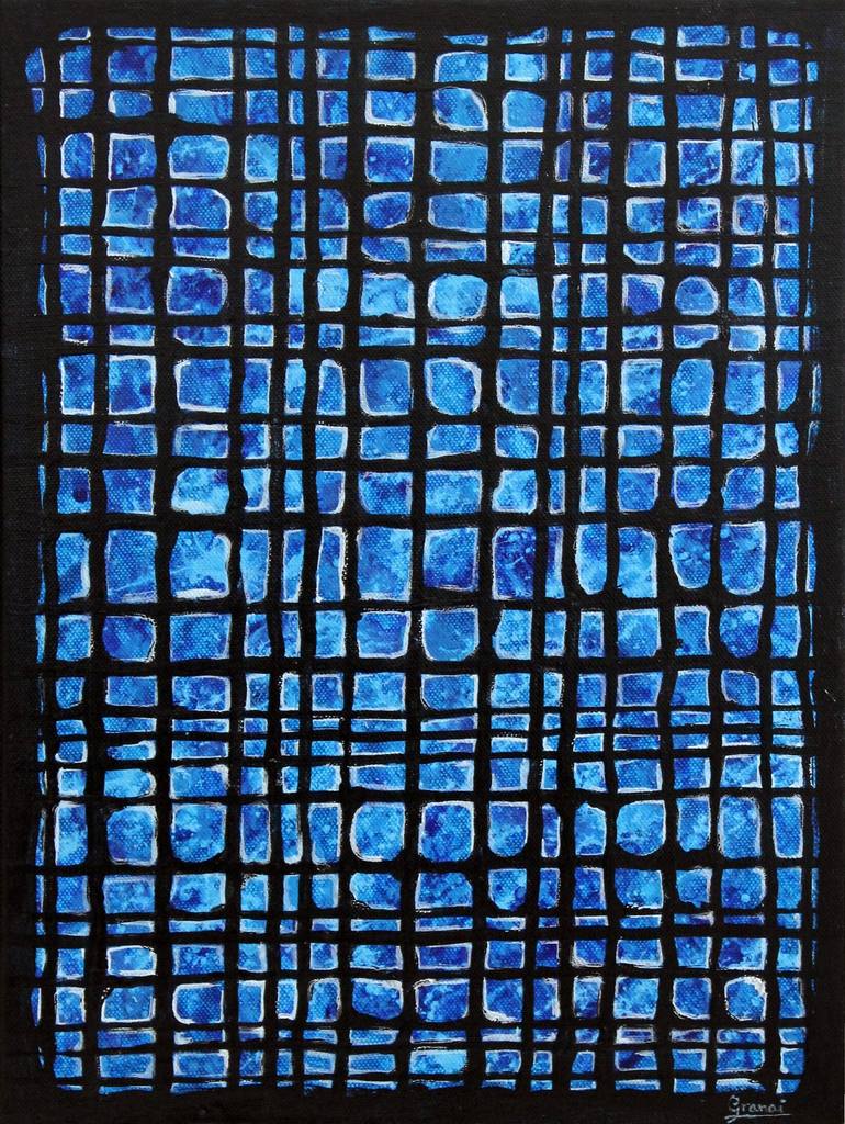 Combination of light and color in blue, acrylic on canvas, mounted on a wooden frame.