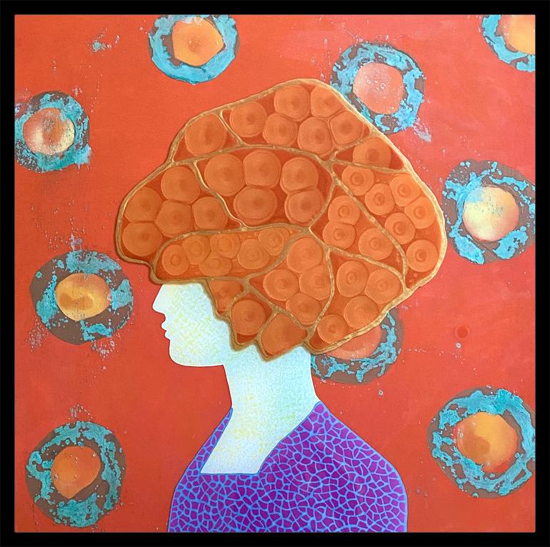 ORANGE BEAUTY is an original painting belonging to my series ENIGMA. The series is entirely dedicated to women and their leadership. It's a mixed media, one of a kind artwork with a tri-dimensional effect.
