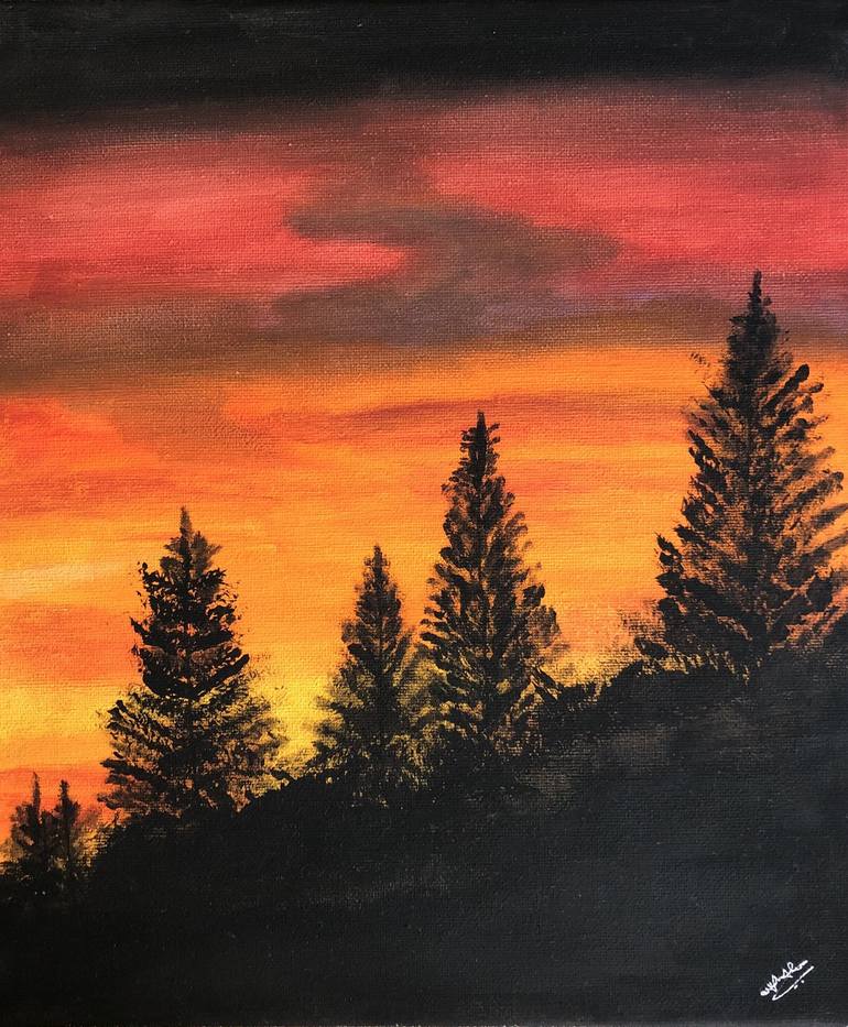 I was inspired by nature photographs to bring this painting to life. It was used using acrylic on canvas and textured to bring out the moods in the scene to set the tone. Its just before Sunset, with an orange tinge, symbolic for a energy, excitement and adventure.