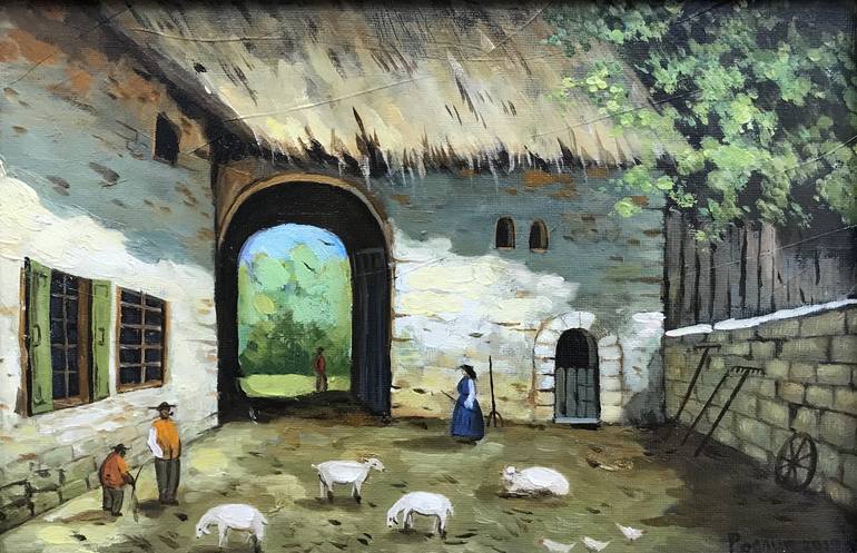 Original artwork description "Courtyard with sheep'' Size 30x20 cm 2019 Village life is not just a rural romance with chickens and sheep, but an opportunity to really get a taste of life in the country. From my childhood and carefree memories, only fragments of such pictures remain, when all the jo...