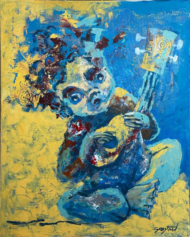 ORIGINAL painting 30"x24" Ukulele This painting is ready to hang: I've attached the wire to the back, and this canvas goes as is, no frame needed (unless you want it) Something cute and funny sometimes I see on my underpainting. Sometimes I need more time, sometimes less to see something which I r...