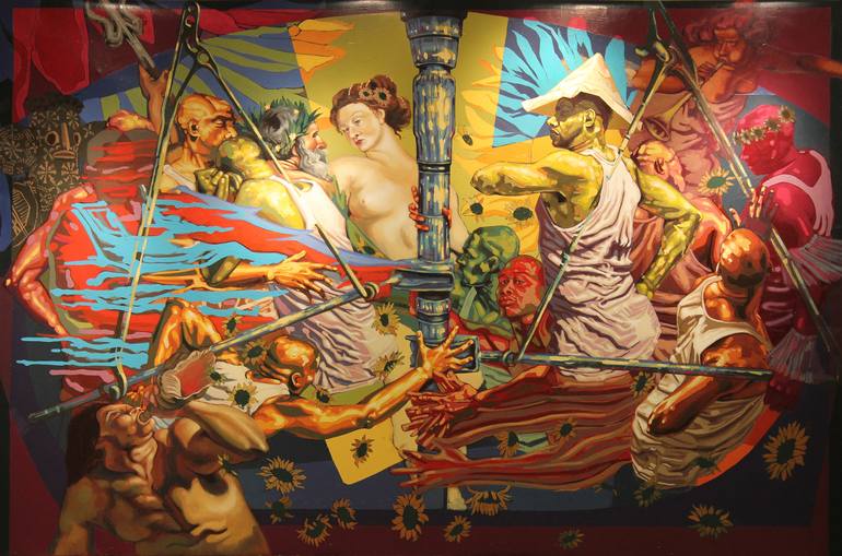 This painting was created as a closure to the META series. (The META series paintings were a reaction to notions of color and the history of slavery that had plagued me throughout my childhood and adult life). The feeling that I wanted to convey was that of being told a secret that everyone already ...