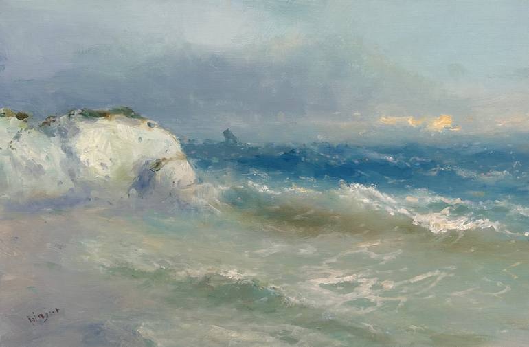 Artist: Karen Darbinyan Work: Original Oil Painting, Handmade Artwork, One of a Kind Medium: Oil on Linen, Year: 2023 Style: Impressionism Title: Ocean Cliff Size: 15.5" x 23.5" x 0.8'' inch, (39x60x2cm), Unframed, Stretched on wooden bar, Ready to Hang, Karen Darbinyan speaks of painting as his li...