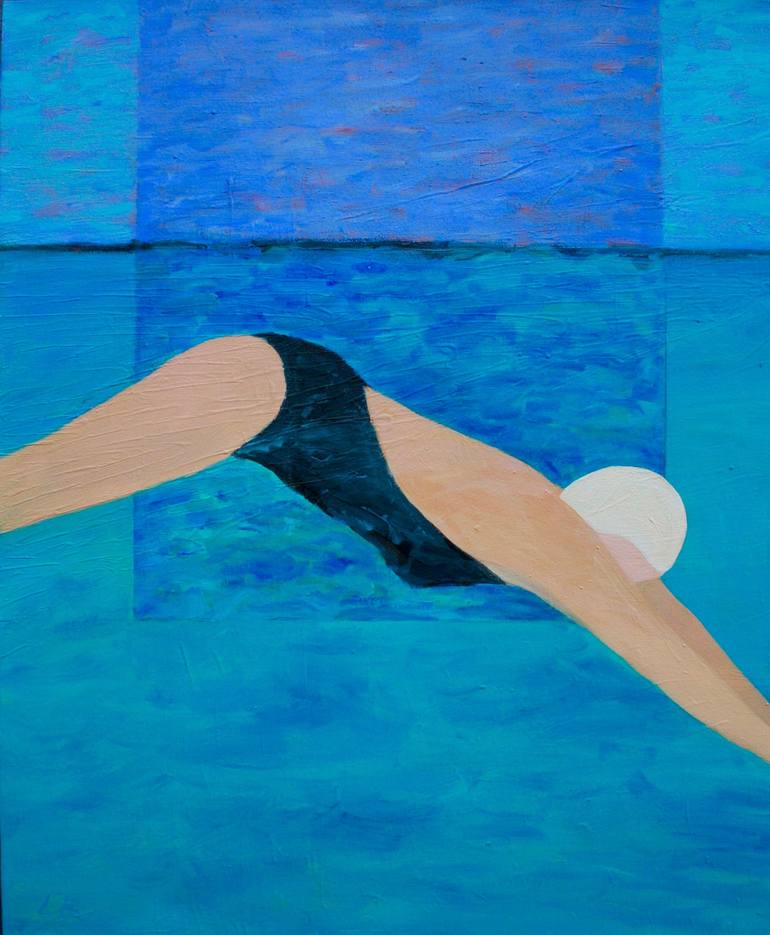 This painting is from the "Swimmer Series... The canvas is wrapped around to the back of the stretcher bar with painted sides; it is wired and ready to hang.