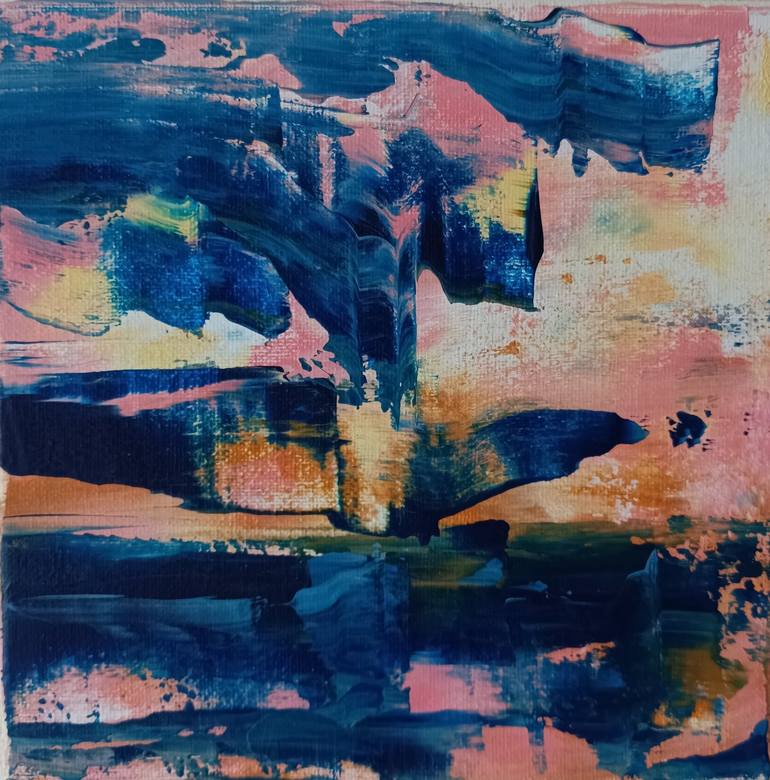I would call this small painting “Ocean of Dreams” - the title reflects the vibrancy of the colors and the dynamics and contrast between large and small, evoking the powerful collision of land, water and sky. The abstract lines and layers of color create a sense of transition or movement through dif...