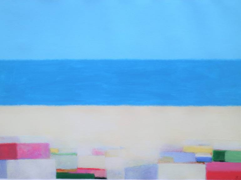 "Oceanside" 18" X 24" acrylic/watercolor paper 2022. This painting is not framed. Sold.Private collection,Canada. This painting was inspired by beaches of Florida.