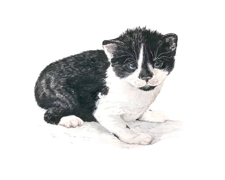 Ogie the kitten painted with artists grade watercolors and Faber Castell ink markers on 100% cotton 300 gms watercolor paper.