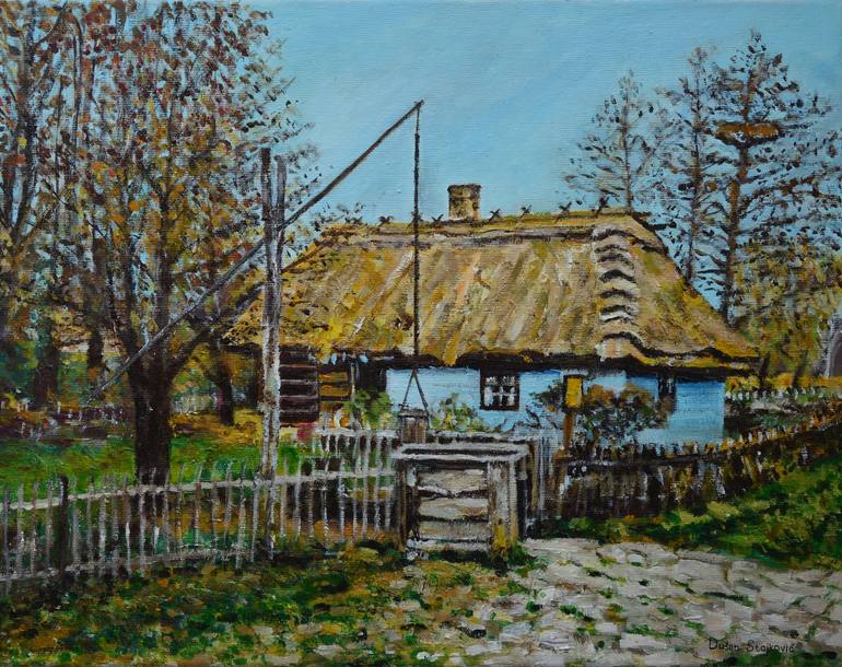 This painting captures ,,Old well,, surrounded by an old house and beautiful nature that gives a special scene. It is signed on the front and comes with a Certificate of Authenticity.