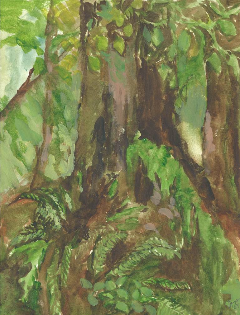 This is a watercolor painting of the trunk of a tree and the ferns that were growing all around it, the floor of the rainforest. I was on the Olympic Peninsula in the green, green rainforest.