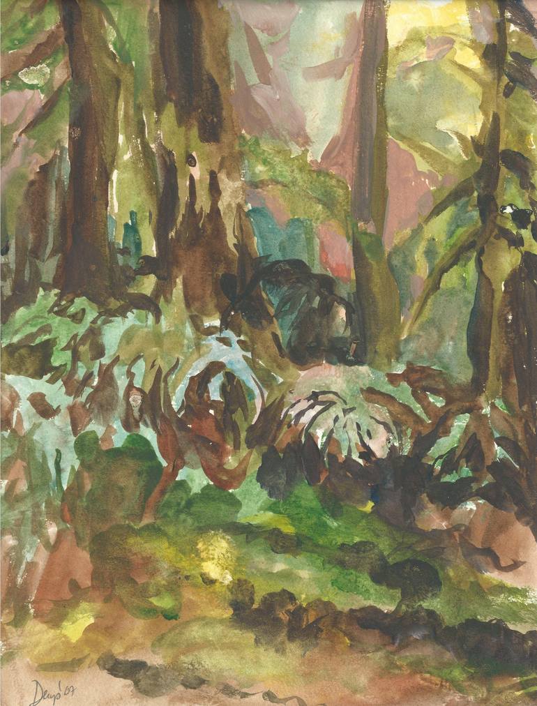 Rainforest floor with all of the ferns and tree trunks, undergrowth and mosses. This rainforest was on the Olympic Peninsula, in OP National Park.