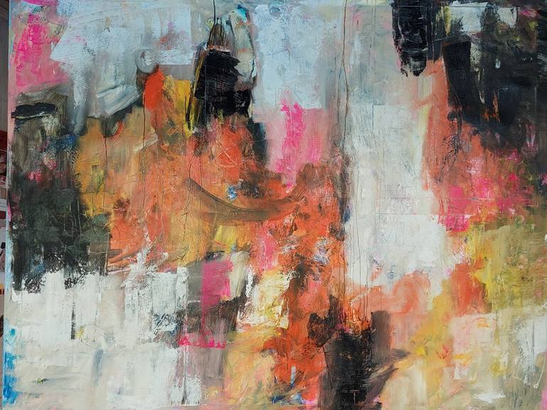 Large painting the inspiration of Afrika. The colors are warm and it give your room an safari look