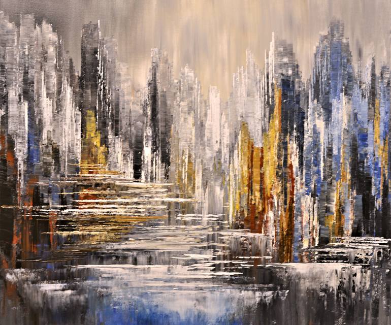 For art and learning and friendship, Where beneficent truth is supreme,— Those everlasting cities Built on the hills of dream; Bliss Carman, By Still Waters This is an Original Palette knife Abstract Cityscape Painting. Sides of the canvas are painted black and can hung with or without frame. Pro...