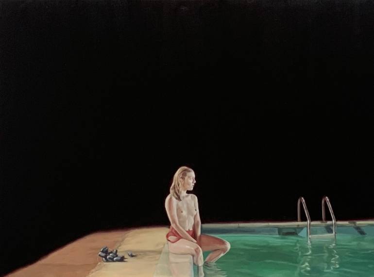 'On the Moon' is painted from a still taken from Peter Greenaway's 1988 film 'Drowning by Numbers'. I chose this image and named the painting because it evoked a (beautiful) sense of isolation, hence my title, 'On the Moon'.