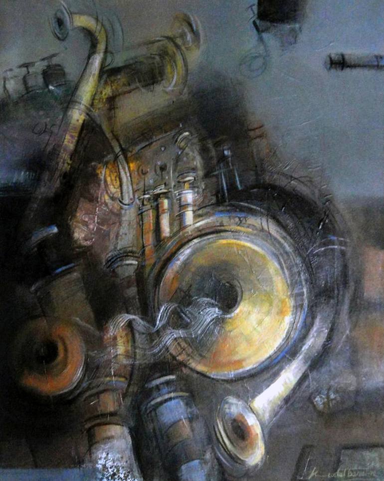Capable of bringing to life the melodies of an entire orchestra is a talented one-man band that is featured in this wonderful depiction of modern art. The creator utilizes subdued tones but allows the intricate detailing to bring to life the talented musician who is all set to entertain his audience...