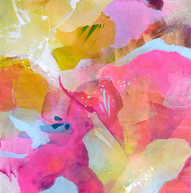 Small abstract painting ready to hang The size is 40 cm x 40 cm (15.75" x 15.75"), the canvas is 2 cm (0,78 inch) deep. The colors are dark red, rose, light blue, red-brown, yellow, magenta, white and spots of dark blue. It’s painted on a stretched canvas, the staples are on the back and the edges...