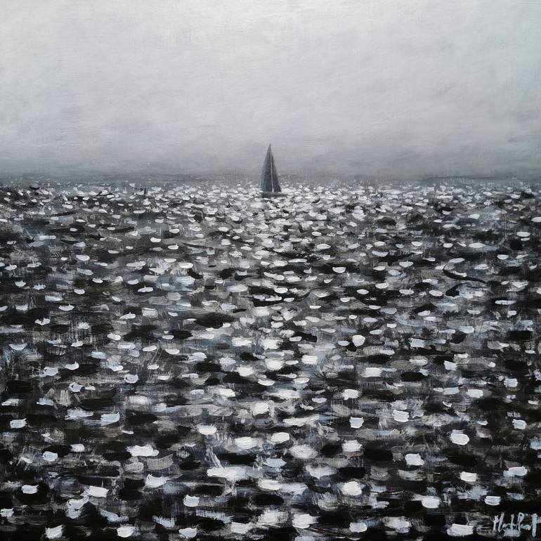 This painting is part of my 'Open Water' series. My work aims to balance elements of abstract and figurative painting. The depiction of water and the distorted light and reflections it can create enables me to easily incorporate these two contrasting styles.
