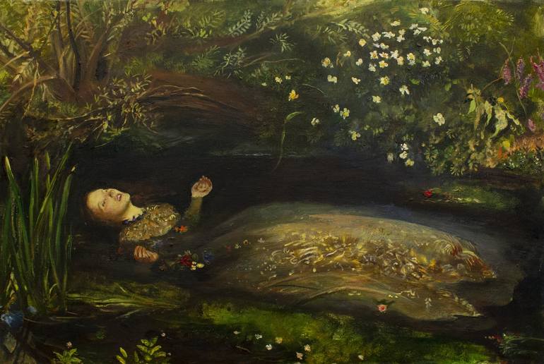 Reproduction of the painting "Ophelia" by John Millet. Oil paints on canvas. Dimensions of the painting: 40*60cm.