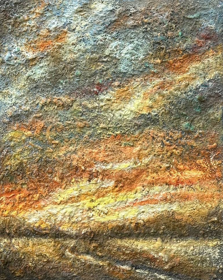 On my last paintings I've used thick paint, saw dust, latex, acrylic, caulk, and sand, to create a sense of depth to evoke certain emotions that flat paintings can not .Texture can create visual balance and contrast. These paintings with rough texture don't have a smooth area to provide relief from ...