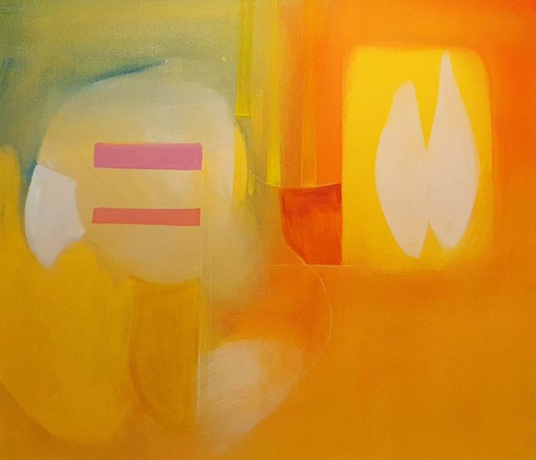In the painting 'Orange Yellow Blue Composition I have used complimentary colours to produce a bright and striking piece. My work is influenced by Cubism, Orphism, Synchronism and Colour field painting. The painting is framed in a white floating frame which really compliments it. Title: Orange Yell...