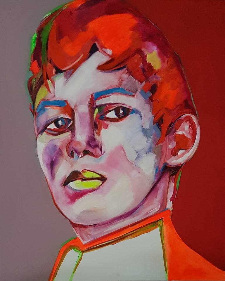 full color orange oil painting with acyrlic on canvas portrait