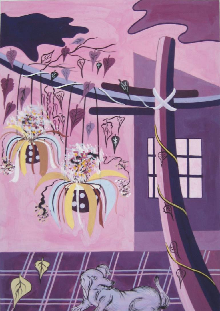 Orchid Trellis in Bloom The painting depicts a trellis of blooming orchids in a home garden. The orchids are in full bloom in a variety of colors, from light purple to dark pink. The lush green leaves create a cheerful and vibrant scene. The painting is painted with acrylic, giving it a bright and ...