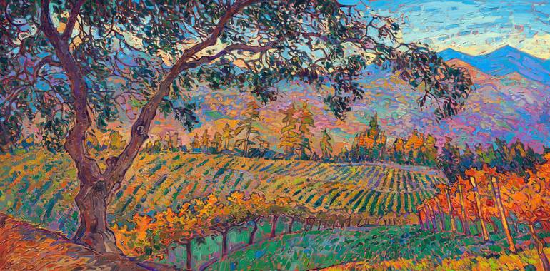 “My goal is to capture the beauty of light during the golden hour and transform ordinary landscapes into extraordinary mosaics of color and texture. I apply oil paints in thick, expressive brushstrokes laid side-by-side, without blending, in the style I coined Open Impressionism. My goal for each painting is to capture a moment in time so beautiful it makes you catch your breath when you see it. I want my paintings to speak to you again and again, drawing you in, making you part of the impressionistic movement." -- Erin Hanson