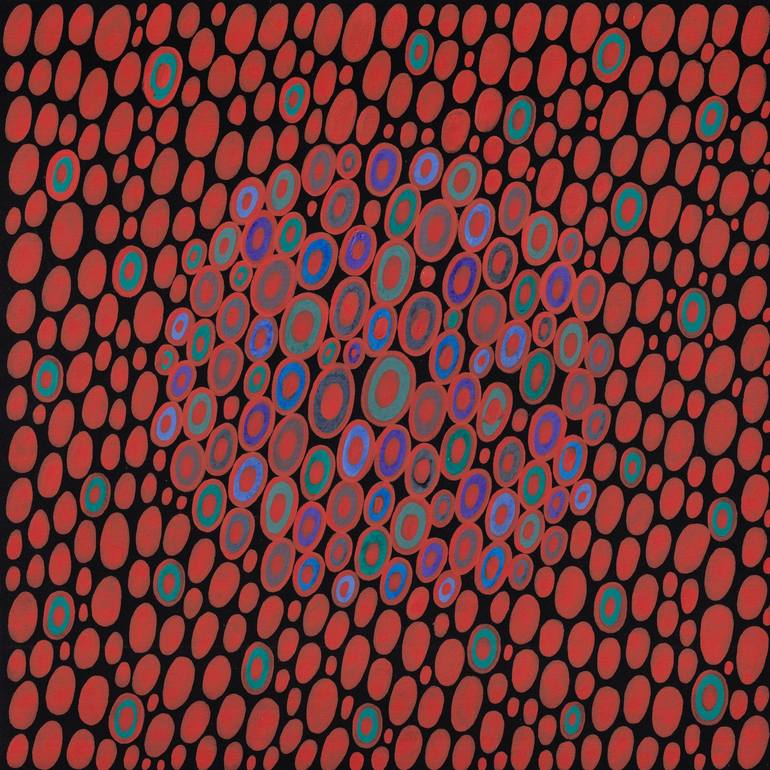 A colorful abstract painting with circles. This is an original one-of-a-kind hand-painted artwork. Painting is NOT FRAMED, photos with frames are just for example of interior design. The artwork is painted with professional acrylic markers on high-quality black paper of 300 gsm.