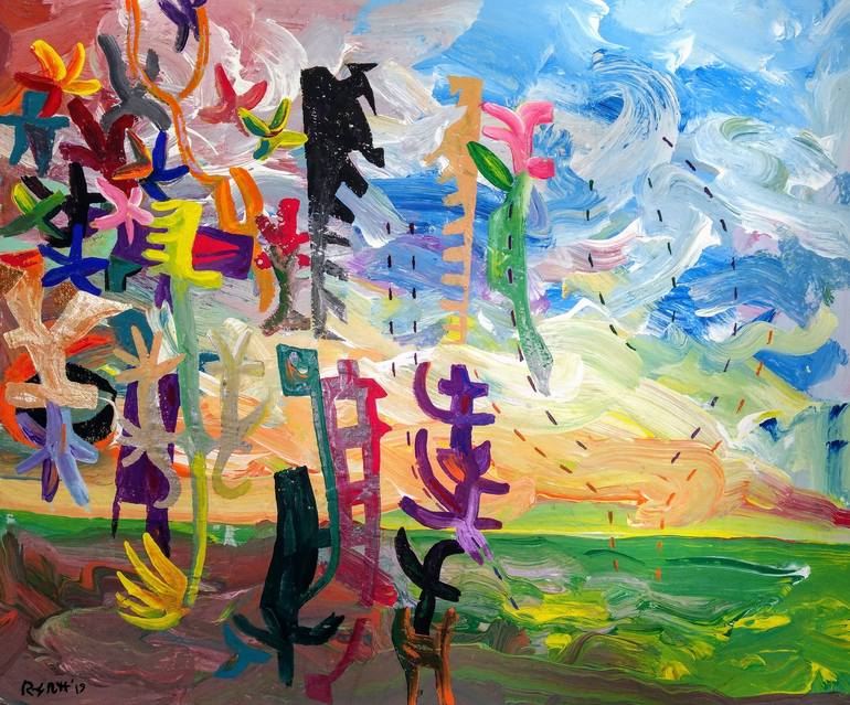 I've been making abstract art for most of my life, paintings, drawings, collage, mixed media and abstract audio compositions and poetry. At some point, the world broke into particles. I realized that matter was interchangeable. Everything is significant, in that, it is part of everything else. Lately, I’ve been exploring abstract narrative paintings with brightly colored tempera and latex and collaborative audio albums including piano, bass, cello, guitar, horns, Orba, ambient sounds, voice, and more. Technically, I start with many sketches, select a few to draw on canvas, and then I start painting. I follow the story where it leads, interactively; gradually a narrative emerges. I moved to North Carolina in 2018 (where I am a member of the Orange County Artists Guild, Carrboro), after having lived in Miami for 33 years (where I was a frequent participant in the Listening Club, Audiotheque @ ArtCenter, Miami Beach). Originally from the Chicago area, I was a founding member of the experimental art rock band Merz Pix. Private collectors across the US and the globe (France, the UK, the Netherlands, Tasmania, Japan) have acquired my work. [8/02/2025]