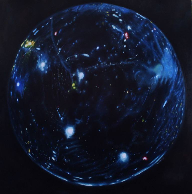This work was inspired by the theories of multiple universes stuck together like soap bubbles. This is a concept painting depicting our universe from the outside.