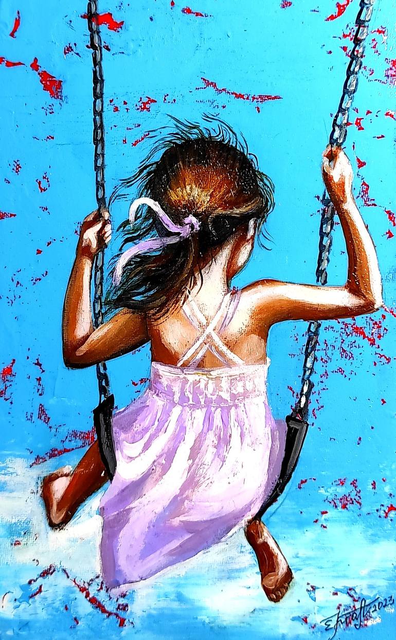 GIFT MODERN ART DECOR HOME DECOR GIFT IDEA (2023)Discover the enchanting world of art with this captivating acrylic painting on canvas! The artwork measures 30x20x2 cm and is crafted on high-quality linen canvas. It captures a magical scene: a little girl on a swing. This artwork captivates with i...